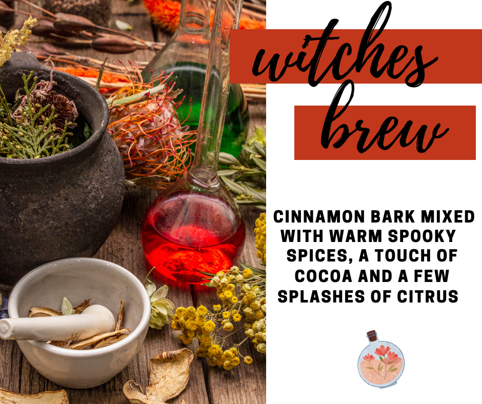 Witches Brew Fragrance Oil - As a witch’s brew should be - the notes of this scent are mysterious. Cinnamon bark blended with warm, spooky spices, a touch of cocoa and a few splashes of citrus. An amazing Fall / Halloween fragrance!
